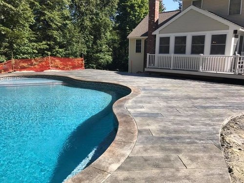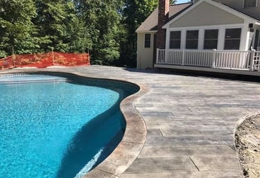 "Our stamped concrete pool deck is stunning! The design and finish add so much character to our backyard. Thank you for the outstanding work!"